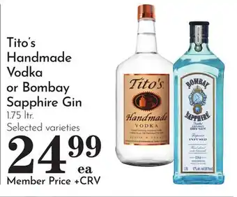 Tito's Handmade Vodka or Bombay Sapphire Gin deals and online offers from the current Pavilions weekly ad