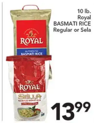 In which store will 10 lb. Royal BASMATI RICE Regular or Sela be on sale next week? These are some of the questions we get asked a lot. It’s only normal, nobody likes to pay too much! Our team keeps an eye on all deals and lists them online as soon as possible. So you can customize your (shopping) list with this week's offers and those of next week. Make sure to check next week’s Pete's Fresh Market ad, some of the specials are only available next week or online.Frequently asked questions about 10 lb. Royal BASMATI RICE Regular or Sela