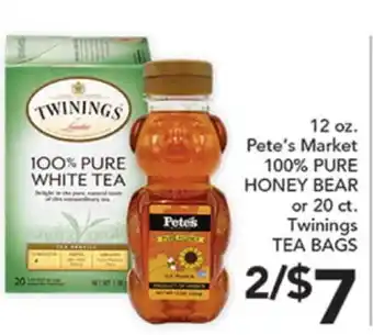 12 oz. Pete's Market 100% PURE HONEY BEAR or 20 ct. Twinings TEA BAGS Discount at Pete's Fresh Market