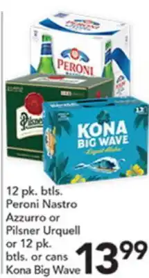 12 pk. btls., Peroni Nastro Azzurro or Pilsner Urquell or 12 pk. btls. or cans Kona Big Wave