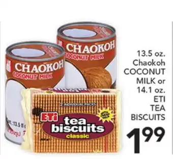 13.5 oz. Chaokoh COCONUT MILK or 14.1 oz. ETI TEA BISCUITS offers and online specials, straight from the current Pete's Fresh Market ad