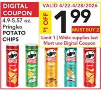 4.9-5.57 oz. Pringles POTATO CHIPS offers and online specials, straight from the current Pete's Fresh Market ad