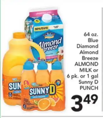 64 oz. Blue Diamond Almond Breeze ALMOND MILK or 6 pk. or 1 gal Sunny D PUNCH Discount at Pete's Fresh Market