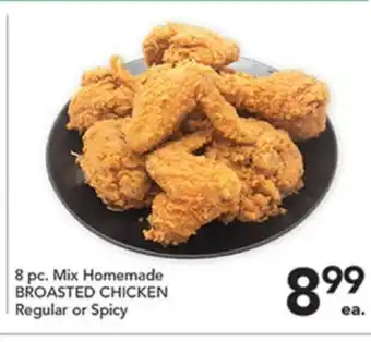 The price of 8 pc. Mix Homemade BROASTED CHICKEN can be found at the top of the page, together with the dates during which the offer is available. You can also check the price in the current Pete's Fresh Market weekly ad or on the Pete's Fresh Market website. Promotional offers assure you of buying Pete's Fresh Market products at the lowest price.