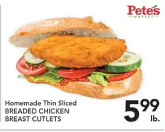 Current Homemade Thin Sliced BREADED CHICKEN BREAST CUTLETS deal at Pete's Fresh Market from 4-03 until 10-03.