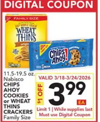 Nabisco CHIPS AHOY COOKIES or WHEAT THINS CRACKERS Deal at Pete's Fresh Market