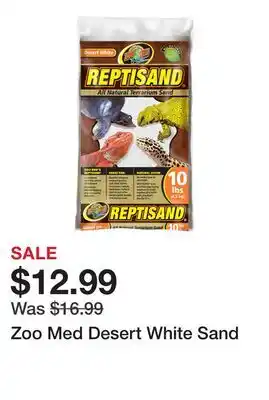 In which store will Zoo Med Desert White Sand be on sale next week? These are some of the questions we get asked a lot. It’s only normal, nobody likes to pay too much! Our team keeps an eye on all deals and lists them online as soon as possible. So you can customize your (shopping) list with this week's offers and those of next week. Make sure to check next week’s Petsmart ad, some of the specials are only available next week or online.Frequently asked questions about Zoo Med Desert White Sand