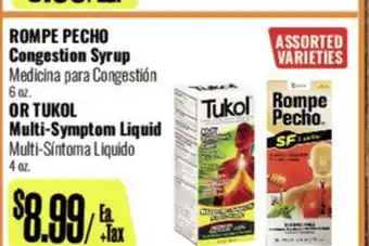 ROMPE PECHO Congestion Syrup OR TUKOL Multi-Symptom Liquid Deal at R Ranch Markets