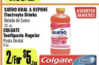 SUERO ORAL & REPONE Electroyte Drinks, 33 oz., COLGATE Toothpaste Regular, 6 oz deal in the weekly ad of R Ranch Markets