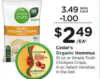 The price of Cedar's Organic Hommus can be found at the top of the page, together with the dates during which the offer is available. You can also check the price in the current Ralphs weekly ad or on the Ralphs website. Promotional offers assure you of buying Ralphs products at the lowest price.