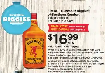 The price of Fireball, Buzzballz Biggies or Southern Comfort can be found at the top of the page, together with the dates during which the offer is available. You can also check the price in the current Ralphs weekly ad or on the Ralphs website. Promotional offers assure you of buying Ralphs products at the lowest price.