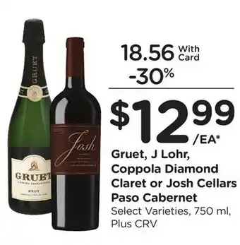 Gruet, J Lohr, Coppola Diamond Claret or Josh Cellars Paso Cabernet deal in the weekly ad of Ralphs