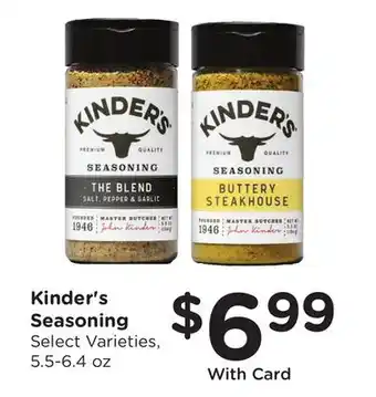 The price of Kinder's Seasoning can be found at the top of the page, together with the dates during which the offer is available. You can also check the price in the current Ralphs weekly ad or on the Ralphs website. Promotional offers assure you of buying Ralphs products at the lowest price.