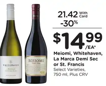 When is Meiomi, Whitehaven, La Marca Demi Sec or St. Francis on sale? or "I want to know if Meiomi, Whitehaven, La Marca Demi Sec or St. Francis will be discounted next week?" These are very common questions. Many people make a (shopping) list, with products that they are looking to buy next week. That’s why we always post next week’s flyers first. So you know exactly whether you need to wait a while before making a purchase or when to get it at the cheapest price. Keep an eye on our website to see if next week’s flyer has a deal on Meiomi, Whitehaven, La Marca Demi Sec or St. Francis.Will there be a promotion Meiomi, Whitehaven, La Marca Demi Sec or St. Francis next week?