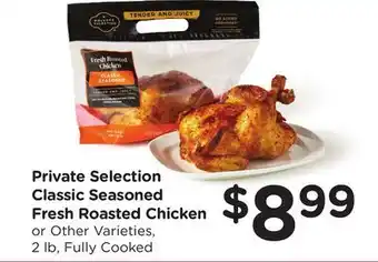 This offer is available in various stores, view all products to get the cheapest Private Selection Classic Seasoned Fresh Roasted Chicken. If you'd like to find out whether this product has a bigger discount in another store, check the category 'Grocery'. You may also find these offers interesting: Private Selection Classic Seasoned Fresh Roasted Chicken, Fresh Baked Private Selection Butter Croissants & Fresh Baked Private Selection Butter Croissant.