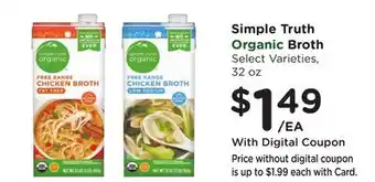 This offer is available in various stores, view all products to get the cheapest Simple Truth Organic Broth. If you'd like to find out whether this product has a bigger discount in another store, check the category 'Grocery'. You may also find these offers interesting: Simple Truth Organic Broth, Kroger Blackeye Peas or Simple Truth Organic Broth & Simple Truth Organic Avocados.