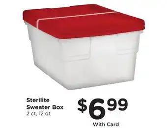 This offer is available in various stores, view all products to get the cheapest Sterilite Sweater Box. If you'd like to find out whether this product has a bigger discount in another store, check the category 'Grocery'. You may also find these offers interesting: Sterilite Sweater Box, Sterilite Sweater Box & Sterilite Wreath Storage Box.