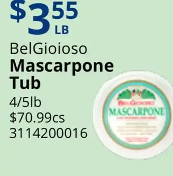 Current BelGioioso Mascarpone Tub deal at Restaurant Depot from 1-04 until 30-04.