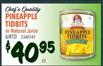 The price of Chef's Quality PINEAPPLE TIDBITS in Natural Juice can be found at the top of the page, together with the dates during which the offer is available. You can also check the price in the current weekly ad or on the Restaurant Depot website. Promotional offers assure you of buying Restaurant Depot products at the lowest price.