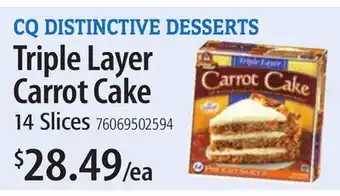 CQ DISTINCTIVE DESSERTS Triple Layer Carrot Cake deal in the weekly ad of Restaurant Depot