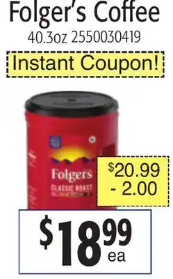 The Folger's Coffee is available this week in the weekly ad of Restaurant Depot, with an attractive discount. On this page, you’ll find all the information about current promotional prices, terms of the promotion, and special discounts. Browse through the weekly ad and check out other offers and promotions related to Folger's Coffee to ensure you get the best deal.The deal for Folger's Coffee is valid in week 09 and can be found in the current weekly ad. Has the deal expired? No worries, you can always check other interesting offers in the weekly ad. You can also follow the product category to be immediately informed when Folger's Coffee is back in the weekly ad of Restaurant Depot.