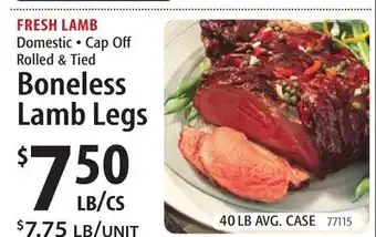 FRESH LAMB Domestic • Cap Off Rolled & Tied Boneless Lamb Legs Deal at Restaurant Depot
