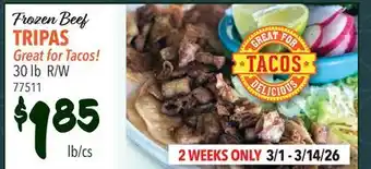 Current Frozen Beef TRIPAS deal at Restaurant Depot from 1-03 until 31-03.