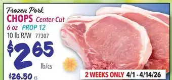 Current Frozen Pork CHOPS Center-Cut deal at Restaurant Depot from 1-04 until 30-04.