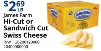 James Farm Hi-Cut or Sandwich Cut Swiss Cheese offers and online specials, straight from the current Restaurant Depot ad