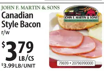 JOHN F. MARTIN & SONS Canadian Style Bacon deals and online offers from the current Restaurant Depot weekly ad
