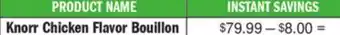 This offer is available in various stores, view all products to get the cheapest Knorr Chicken Flavor Bouillon. If you'd like to find out whether this product has a bigger discount in another store, check the category 'Restaurants'. You may also find these offers interesting: KNORR Granulated Flavor Bouillon, KNORR Chicken Bouillon & Knorr, Chicken Bouillon, 7.9 lbs.
