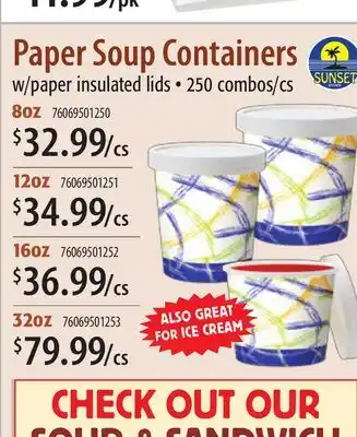 The price of Paper Soup Containers can be found at the top of the page, together with the dates during which the offer is available. You can also check the price in the current weekly ad or on the Restaurant Depot website. Promotional offers assure you of buying Restaurant Depot products at the lowest price.