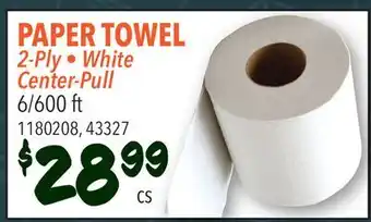 The price of PAPER TOWEL 2-Ply • White Center-Pull can be found at the top of the page, together with the dates during which the offer is available. You can also check the price in the current weekly ad or on the Restaurant Depot website. Promotional offers assure you of buying Restaurant Depot products at the lowest price.