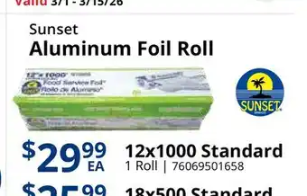 Current Sunset Aluminum Foil Roll deal at Restaurant Depot from 1-03 until 31-03.