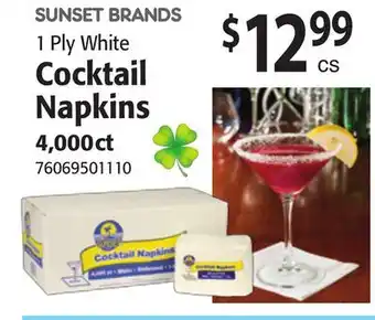 SUNSET BRANDS 1 Ply White Cocktail Napkins deal in the weekly ad of Restaurant Depot