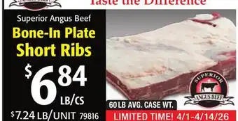 Current Superior Angus Beef Bone-In Plate Short Ribs deal at Restaurant Depot from 1-04 until 30-04.