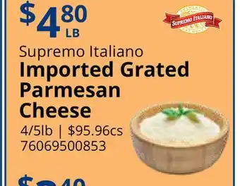 Supremo Italiano Imported Grated Parmesan Cheese deals and online offers from the current Restaurant Depot weekly ad