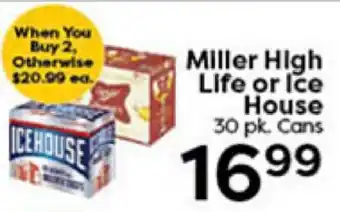 This offer is available in various stores, view all products to get the cheapest Miller High Life or Ice House. If you'd like to find out whether this product has a bigger discount in another store, check the category 'Grocery'. You may also find these offers interesting: Miller High Life, 12-Pack Miller High Life & Miller High Life or Icehouse.