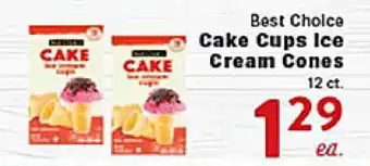 This offer is available in various stores, view all products to get the cheapest Best Choice Cake Cups Ice Cream Cones. If you'd like to find out whether this product has a bigger discount in another store, check the category 'Grocery'. You may also find these offers interesting: Best Choice Ice Cream Cones, Meijer Ice Cream Sugar Cones or Cake Cups & Meijer Ice Cream Sugar Cones 12 ct./5 oz. or Cake Cups 12 ct./1.75 oz.