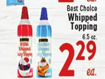This offer is available in various stores, view all products to get the cheapest Best Choice Whipped Topping. If you'd like to find out whether this product has a bigger discount in another store, check the category 'Grocery'. You may also find these offers interesting: Friendly Farms Whipped Topping, Weis Quality Whipped Topping & Weis Quality Whipped Topping.