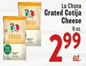 This offer is available in various stores, view all products to get the cheapest La Chona Grated Cotija Cheese. If you'd like to find out whether this product has a bigger discount in another store, check the category 'Grocery'. You may also find these offers interesting: EL GALLITO GRATED COTIJA CHEESE, La Chona Cheese & La Chona SHREDDED CHEESE.