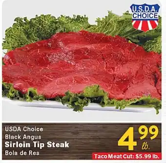 This offer is available in various stores, view all products to get the cheapest USDA Choice Black Angus Sirloin Tip Steak. If you'd like to find out whether this product has a bigger discount in another store, check the category 'Grocery'. You may also find these offers interesting: USDA Choice Black Angus Sandwich Steak, USDA Choice Black Angus Skirt Steak & USDA Choice Black Angus 7 Bone-In Steak.