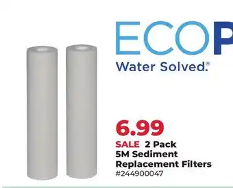 This offer is available in various stores, view all products to get the cheapest Ecopure 2 Pack 5M Sediment Replacement Filters. If you'd like to find out whether this product has a bigger discount in another store, check the category 'Grocery'. You may also find these offers interesting: Ecopure 2 Pack 30 Micron Water Filter Cartridges, COFFEE FILTERS & Refrigerator Filters.