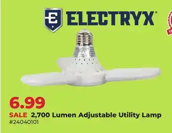 This offer is available in various stores, view all products to get the cheapest Electryx 2,700 Lumen Adjustable Utility Lamp. If you'd like to find out whether this product has a bigger discount in another store, check the category 'Grocery'. You may also find these offers interesting: Electryx 10 Adjustable Brooder Lamp with Switch, Electryx 10, 000 Lumen LED Work Light with USB Port & 95-11/16L 9,300 Lumen.