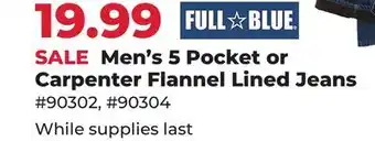Men's 5 Pocket or Carpenter Flannel Lined Jeans offers and online specials, straight from the current Runnings ad