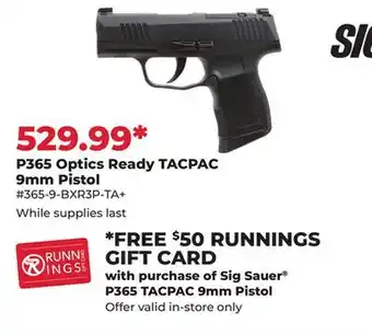 P365 Optics Ready TACPAC 9mm Pistol deal in the weekly ad of Runnings