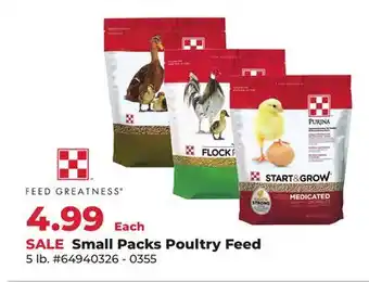 This offer is available in various stores, view all products to get the cheapest Purina Small Packs Poultry Feed. If you'd like to find out whether this product has a bigger discount in another store, check the category 'Grocery'. You may also find these offers interesting: Small, Plastic Poultry Fence & 4 Gallon Small.