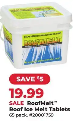 In which store will RoofMelt Roof Ice Melt Tablets be on sale next week? These are some of the questions we get asked a lot. It’s only normal, nobody likes to pay too much! Our team keeps an eye on all deals and lists them online as soon as possible. So you can customize your (shopping) list with this week's offers and those of next week. Make sure to check next week’s Runnings ad, some of the specials are only available next week or online.Frequently asked questions about RoofMelt Roof Ice Melt Tablets