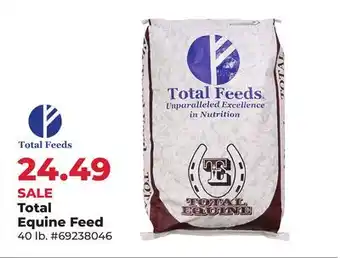 This offer is available in various stores, view all products to get the cheapest Total Equine Feed. If you'd like to find out whether this product has a bigger discount in another store, check the category 'Grocery'. You may also find these offers interesting: Colgate Total Mouthwash or Colgate 360° Total Advanced Toothbrush, Unbeetable Feeds Complete Horse Feed & Colgate Total Toothpaste.