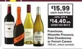 Franciscan, Mionetto Prosecco, Simi Chardonnay or Ferrari-Carano offers and online specials, straight from the current Safeway ad